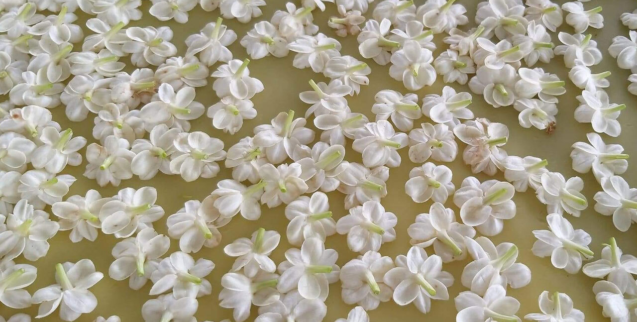 隨著氣候嚴苛茉莉花產量越來越少,49天脂吸茉莉精華,耗時費工、香氣馥郁